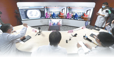 影像、病历、检验指标都显示在大屏幕上,身在各处的专家在线讨论。“17年前,去一家医院要花半天时间,现在通过大屏幕会诊,方便多了。”许旺介绍,疫情期间,银川市新冠肺炎远程会诊中心累计对472名患者进行会诊,不仅效率高,而且降低了人员聚集带来的交叉感染风险。