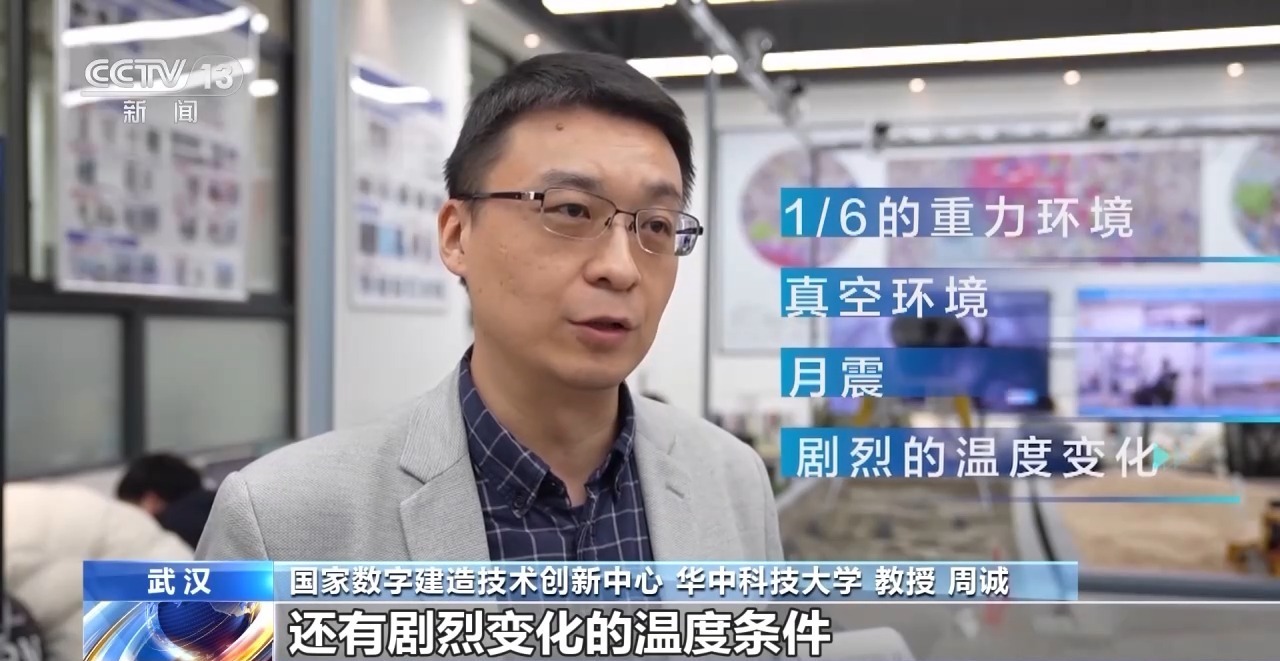 国家数字建造技术创新中心、华中科技大学教授 周诚:月面的建造主要受到当地极端环境条件的限制,比如小重力环境、真空环境,同时还有月震、剧烈变化的温度条件,月昼温度超过180℃,月夜又到-190℃。这些环境非常苛刻,可能对我们的月面建筑的结构、材料,以及使用过程产生非常大的影响。