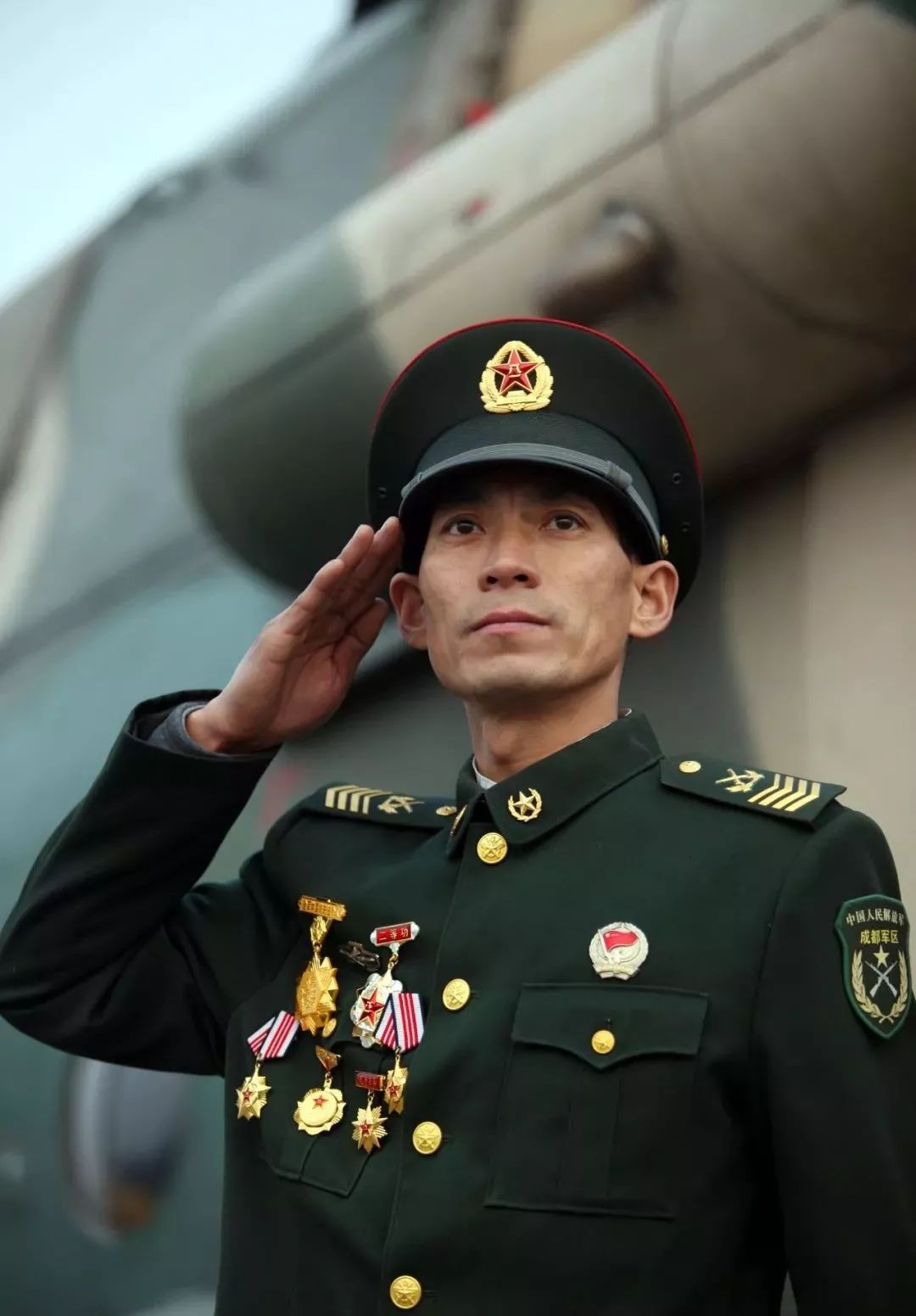 身着军装的战友身前挂满了勋章
