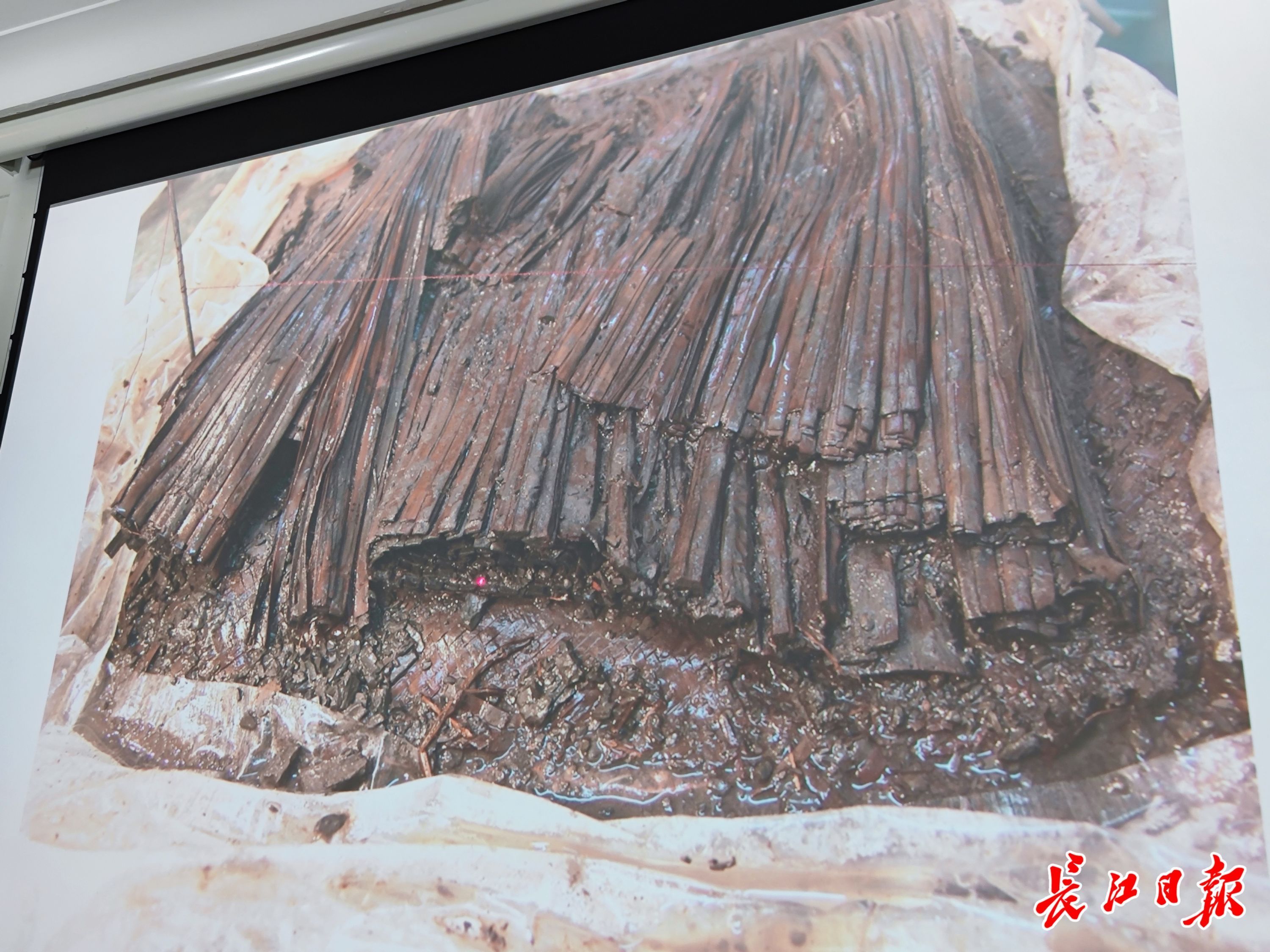 专家讲述云梦睡虎地77号汉墓简牍出土过程。记者汪洋 摄