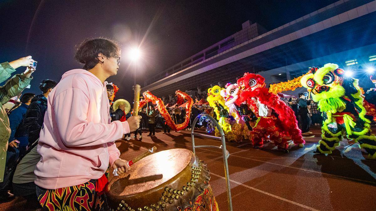 2023年12月31日晚,华中农业大学2024狮山欢乐节热闹上演,主题巡游、新年庙会、文化集市、博物馆奇妙夜、新年电影等丰富多彩的文化活动在校内东运动场及周边区域火热展开,吸引数万师生前来参与,大家欢聚一堂,品美食、赏舞蹈、观舞龙、看巡游……在校园里迎接2024新年的到来。(湖北日报全媒记者 何宇欣 通讯员 刘涛 实习生 李越 摄)