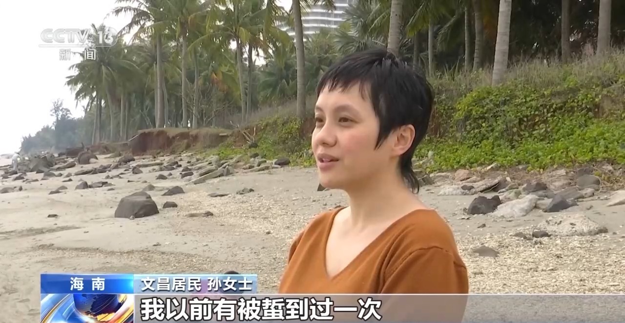 文昌居民孙女士:我以前有被蜇到过一次,那个是普通水母,就像被一群蜜蜂在你腿上扎,好痛。因为僧帽水母长得很漂亮,蓝色的又有气囊,小孩可能会用手想要去按,蜇一下是很疼很疼的。