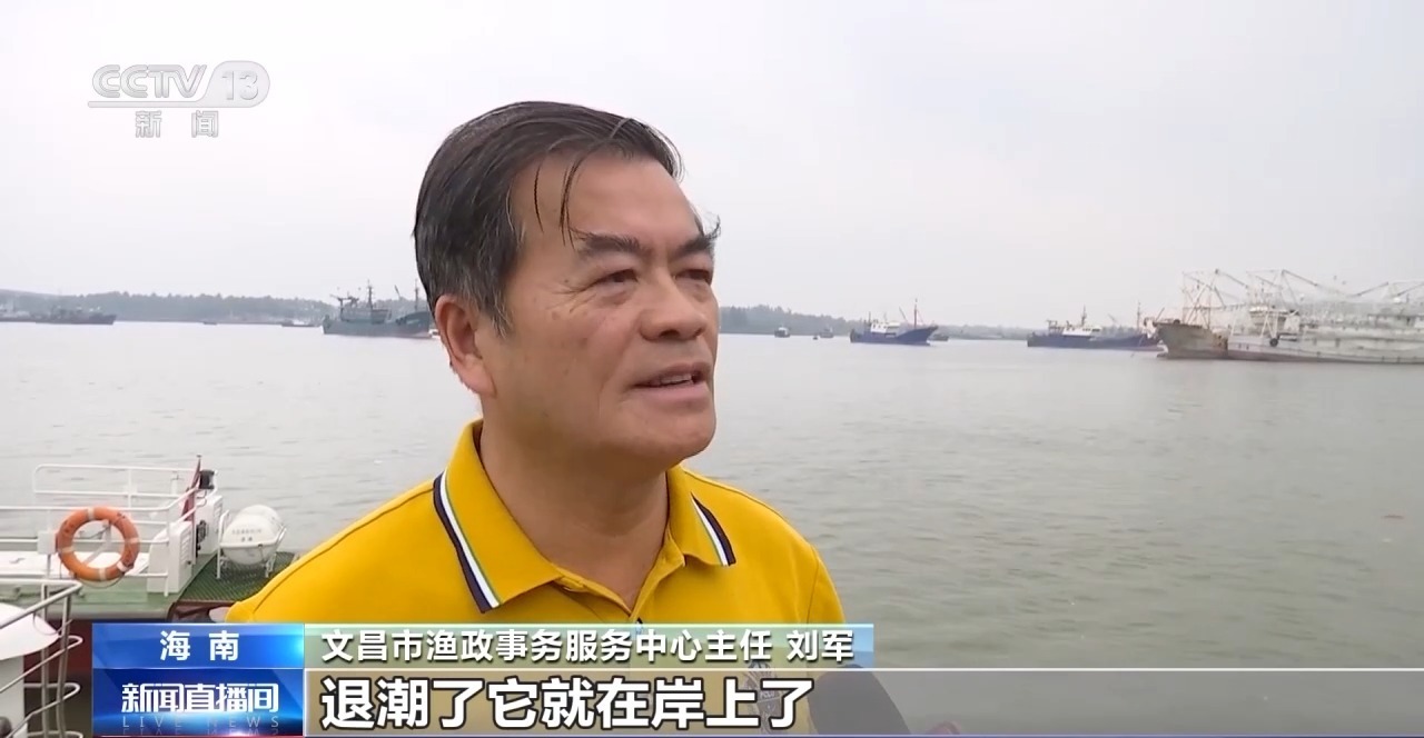 文昌市渔政事务服务中心主任刘军:僧帽水母往近水游,退潮了它就在岸上了,涨潮了它又活起来了,这段季节到三月份都陆陆续续有水母出现。