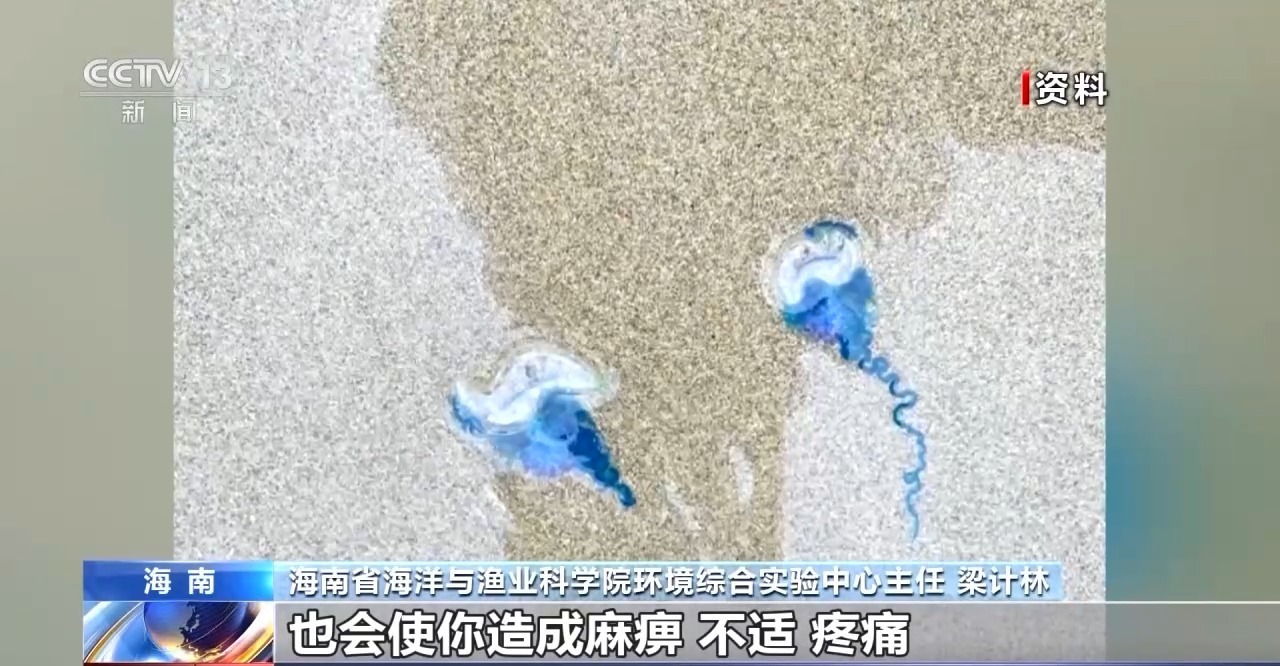 海南省海洋与渔业科学院环境综合实验中心主任梁计林:自然界里面越鲜艳的生物可能毒性就越高,大部分水母都有毒。僧帽水母的毒性在水母里面是比较强的,人要是在海里碰到的话,即使不是立即直接毒死,也会使你麻痹、不适、疼痛,间接使人游不动了致死。不管是在岸上还是在水里千万不要去碰它,即使它已经死了也不能碰,触手里面的刺细胞是有应激反应的,扎进去然后释放毒素,人可能就会血压降低、呼吸衰竭、心脏不适。被蜇到的话,尽快去用清水大量地冲洗,找到身边能用的弱酸性的,像醋这些,涂抹冲洗,尽快就医。