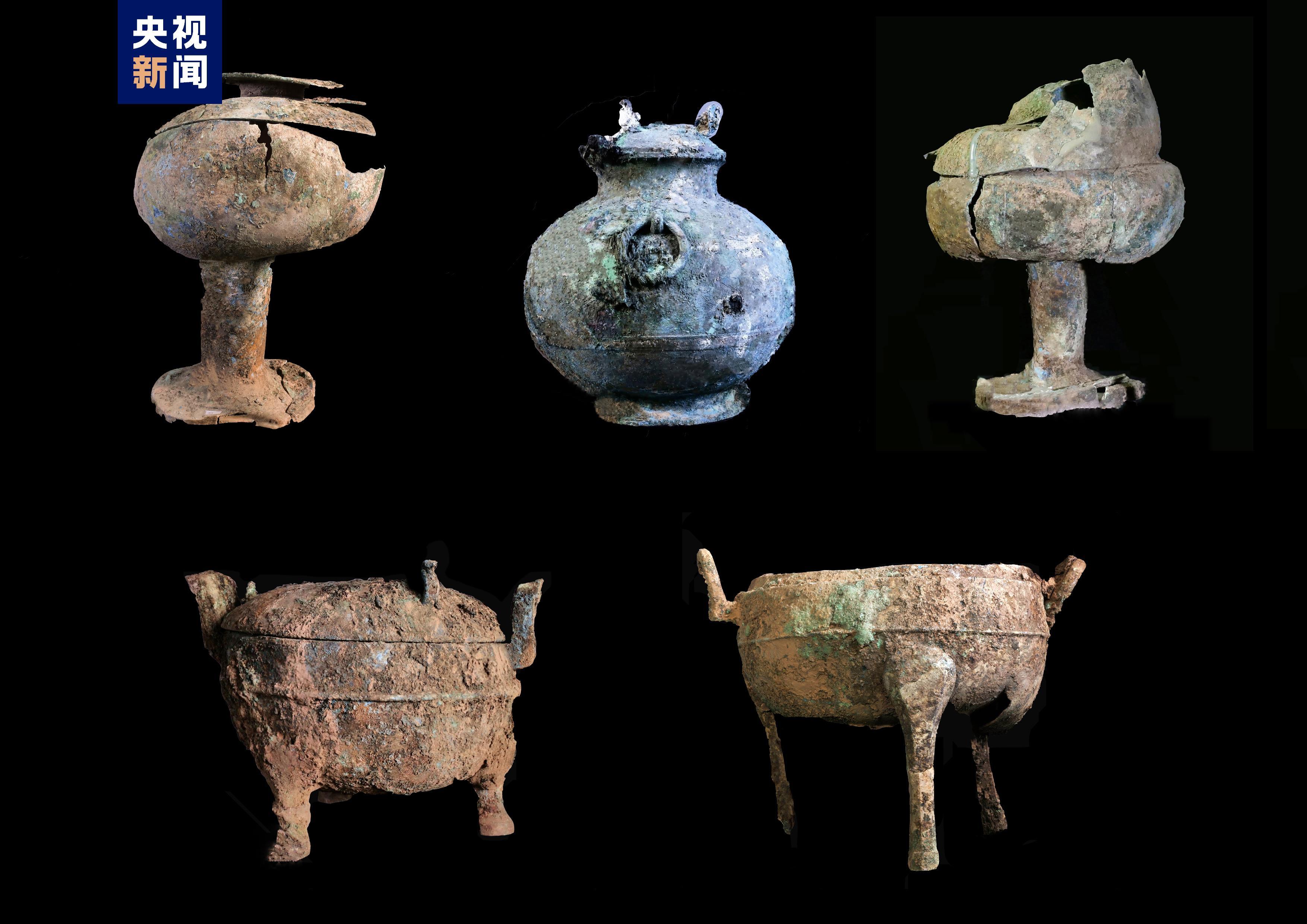 在北墓道清理出一辆四轮独辀木车,木车遗迹保存完整。木车总长约7.2米,上带有完整方形彩绘车盖,东西宽2.6米,南北长4.2米,红色鲜艳,保存完好,已清理出铜质盖弓帽19个,均套于盖弓上,盖弓遗迹保存较好;车盖下压有方形木架,当为车舆。上有曲尺形、圆柱形铜构件。车舆两侧共有4个车轮,附有大型铜质车軎。车衡与车辕十字相交,衡上有两个车轭,均保存完整。