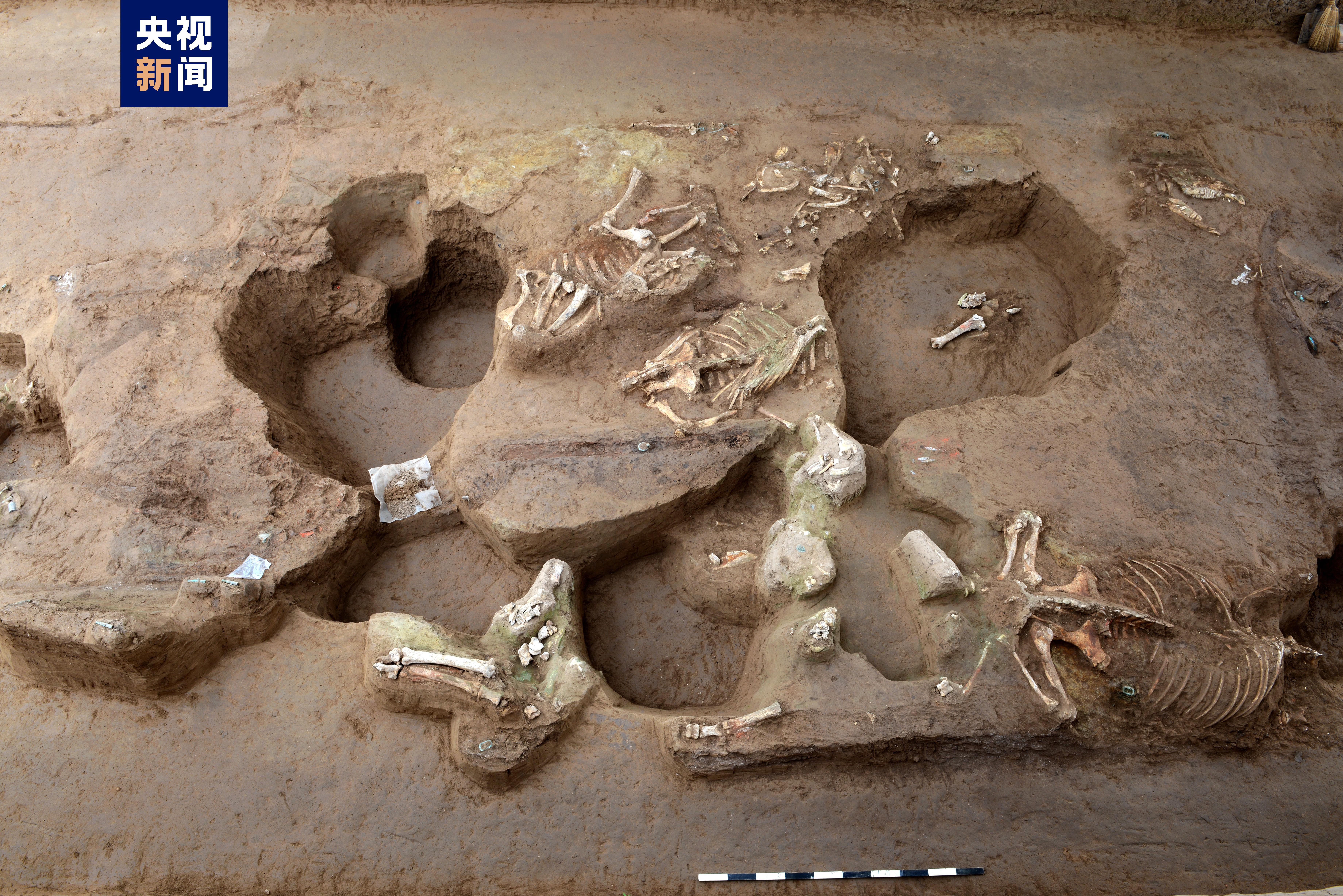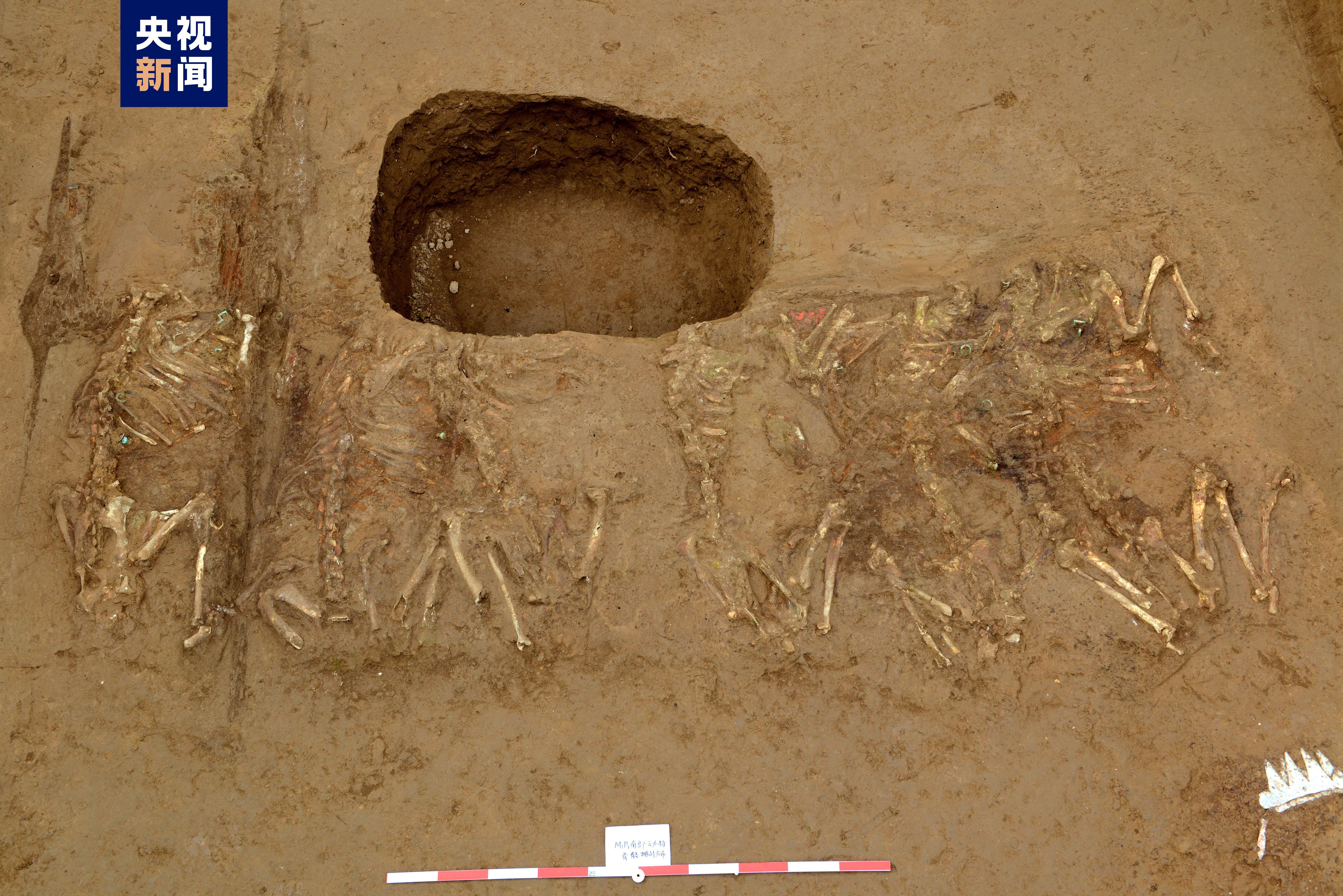 陪葬坑埋藏5组车马,其中一组为羊车,包括独辀木车4辆,双辕木车1辆。羊车为六羊,并列一排,骨骼保存完整。身上装饰有类似于驾马的铜节约、带扣、铜环等青铜马具,显示出处于驾车状态——当为羊车。羊骨身后车辆被破坏。