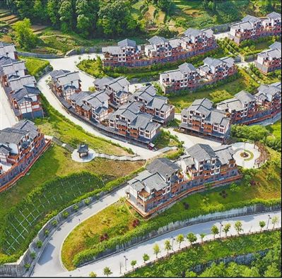 4月24日,在四川省巴中市南江县桥亭镇银堡村依山而建的居民聚居点,干净的道路、设计一致的民宅、优美的环境与青山绿地构成一幅现代新农村的美丽画卷。