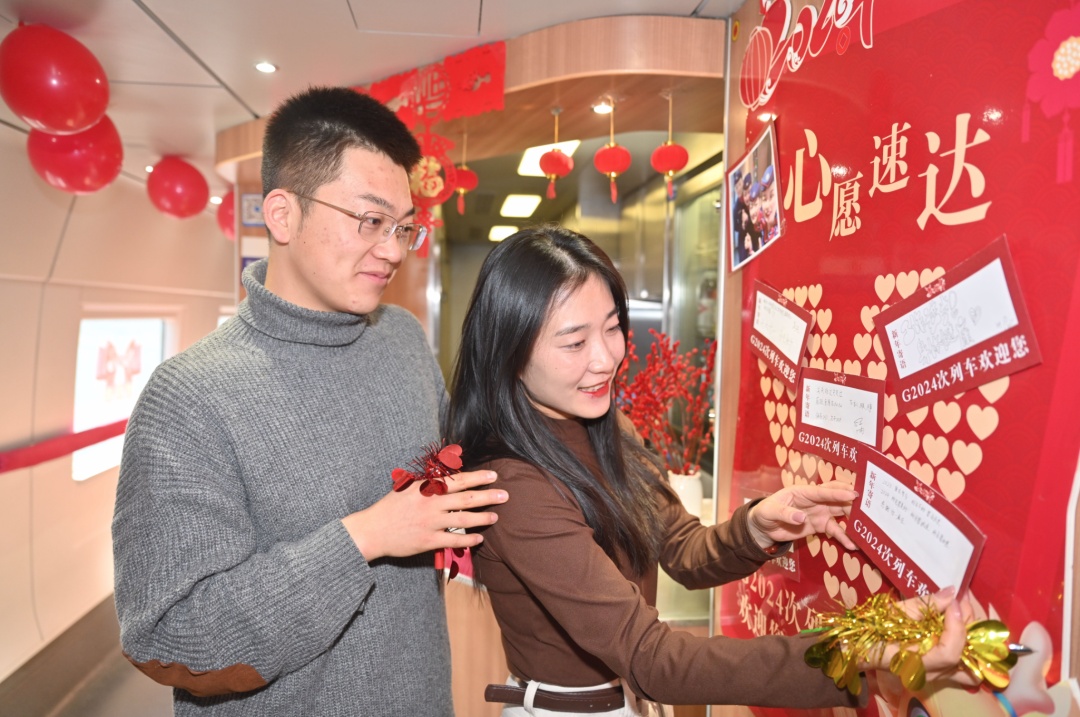 不少旅客在“2024年心愿速达”墙上