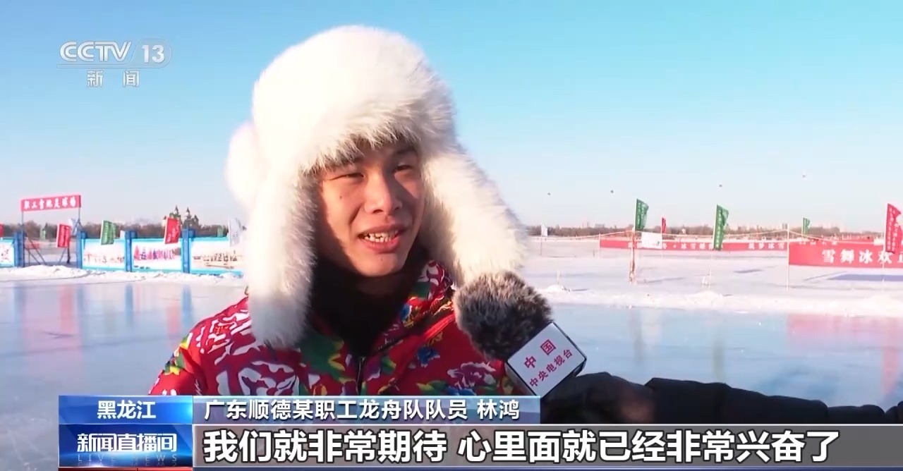 广东顺德某职工龙舟队队员 林鸿:接到消息要来哈尔滨的时候我们就非常期待,心里面就已经非常兴奋了,我们没有说对成绩有很大的要求,更多的是感受这个新的项目,抱着互相交流学习的心态。哈尔滨非常棒。