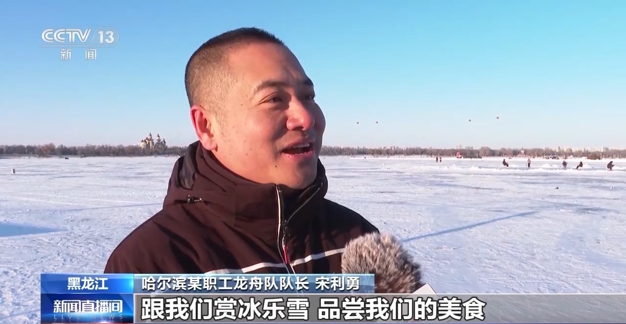 哈尔滨某职工龙舟队队长 宋利勇:作为业余的队伍,像今天这样的比赛我们感觉特别兴奋、特别高兴,而且我们希望全国各地“龙友”都来哈尔滨参加比赛,跟我们赏冰乐雪,品尝我们的美食,欣赏我们美丽的北国风光。