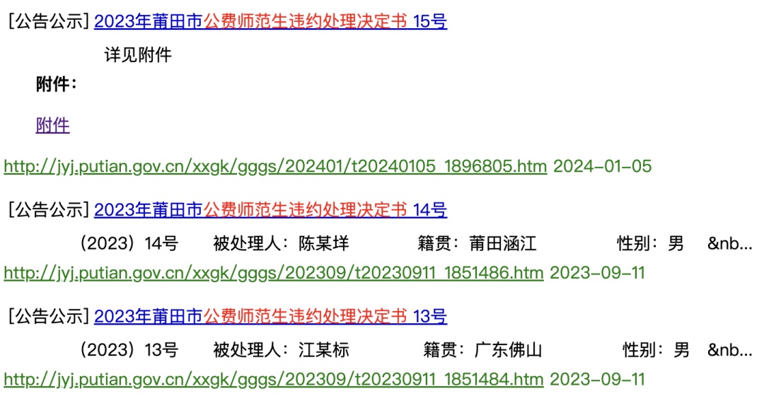 新年的第五天,福建莆田教育局同步了一则公费师范生违约处理决定书,引发关注。