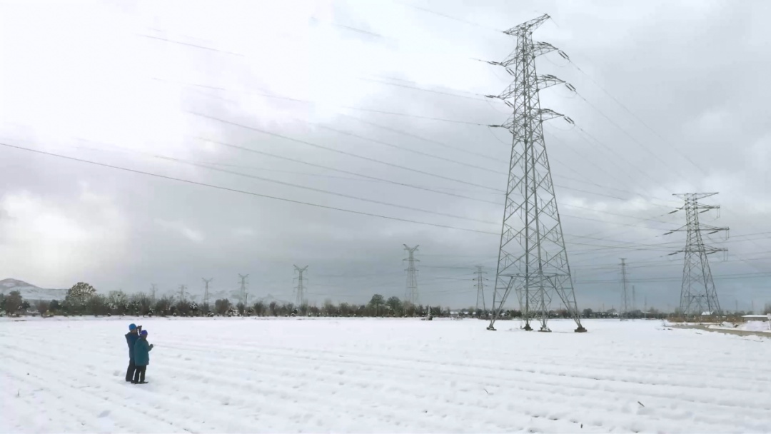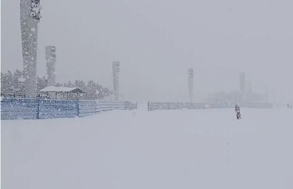 烟台大学东门附近海边的冷流暴雪(图片来源:微博网友“观云梦雨”的视频截图)