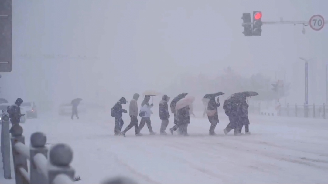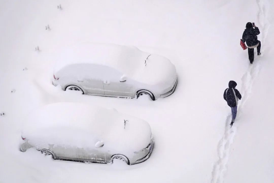 12月21日,市民在山东省烟台市街头冒雪出行。新华社发(唐克摄)