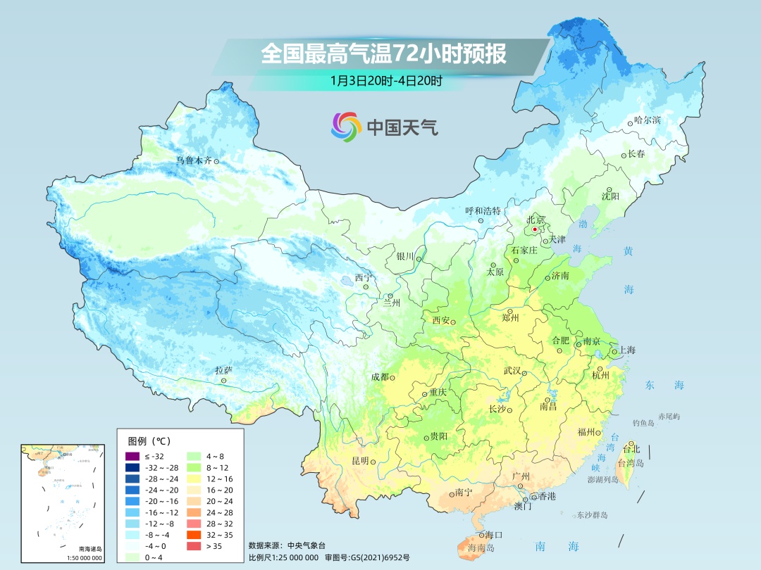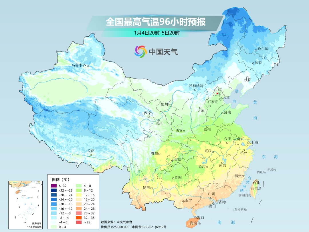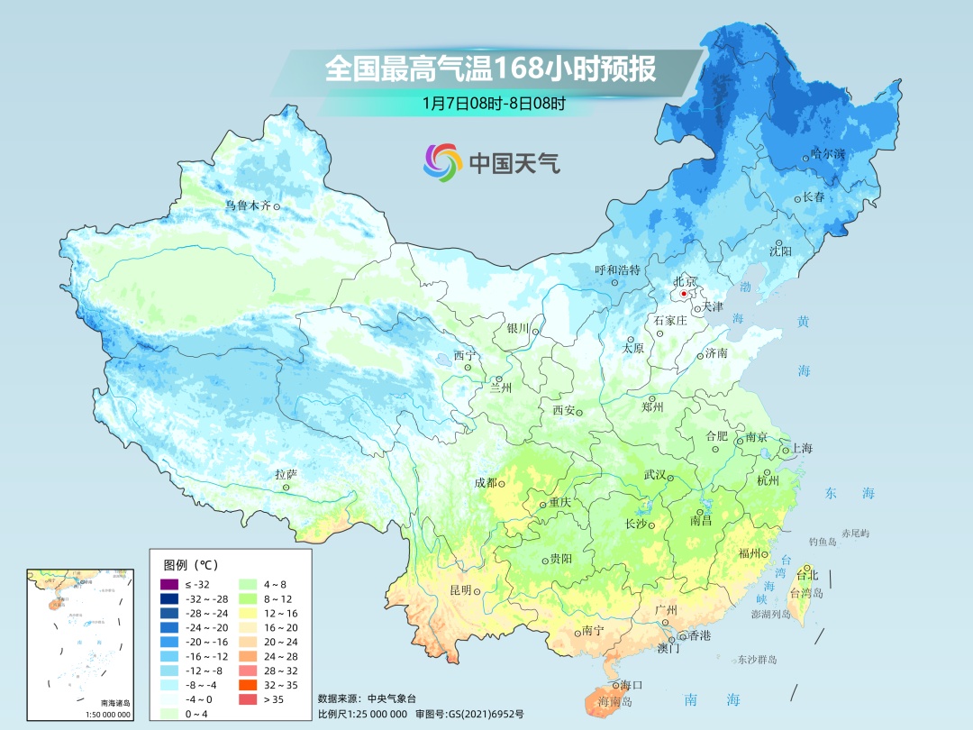 目前预报来看,6日进入小寒节气,6至7日各地自北向南气温陆续转为偏低,东北地区累计降温幅度能达到10~18℃,华北地区可达8~12℃,多地最高气温将降到-10℃或-15℃以下,时效还长,持续关注。