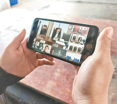 当事人谢灵敏借助“人民法院在线服务”小程序出庭。图为本报记者戴林峰摄 |