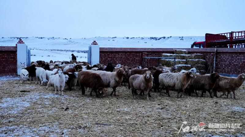 12月13日傍晚,富蕴县吐尔洪乡一处春秋牧场上,寒风凛冽、白雪茫茫。吐尔洪乡莫勒德尔村牧民阿克力波力·特列克正赶着自家200只羊前往冬牧场,途经此处,天色已晚,阿克力波力快速将羊群赶进牧场上修建的暖圈中,自己则前往暖圈旁的“幸福驿站”休息。