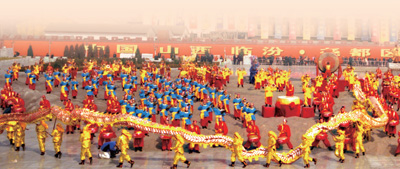 是从崖畔上垂下第一枝黄灿灿的迎春花吗?不是,一枝独秀的迎春花,犹如从天地间穿过的第一只燕子,传递的仅仅是春将要到来的消息。是从漫山遍野红艳艳的山桃花吗?不是,芬芳竞艳的山桃花,犹如杨树梢头叽叽喳喳的喜鹊,那已是春盈满天地间的捷报。那春到底从何时开始苏醒涌动的?我固执地认为,从大年的威风锣鼓猛然爆发、齐声轰鸣,春便苏醒、便起步、便奔涌,以至百般红紫斗芳菲,以至千里莺啼绿映红,以至万里山河皆画卷。