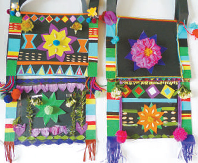 云南省西双版纳傣族自治州景洪市勐龙镇曼别小学学生制作的书包。