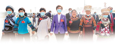 5月22日,第十三届全国人民代表大会第三次会议开幕前,代表们携手进入会场。