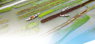 孟加拉国大部分地区为冲积平原,地势低平,极易发生洪涝灾害,有的地区甚至一年中有长达8个月的时间都被洪水侵扰。400多年前,孟加拉国农民开始尝试用“漂浮菜园”的方式,因势利导破解农作物种植难的问题。