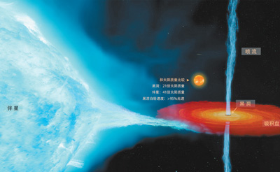 来自澳大利亚、美国和中国的3个科研团队分别独立对黑洞的距离、质量、自旋及其演化作了最为精确的测量和限制,发现此系统包含了一个21倍太阳质量的黑洞,并且其自转速度接近光速。