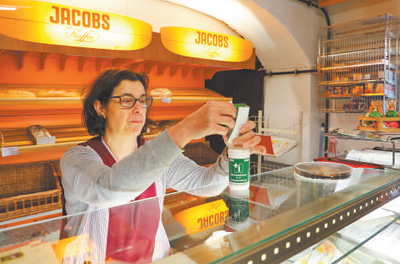 德国杜罗特村的杂货铺里,店员正在包装商品。