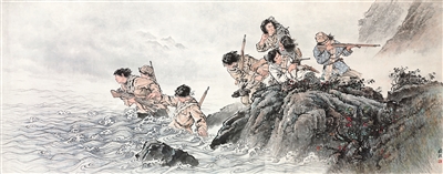 抗日战争期间,中华儿女不屈不挠、浴血奋战,涌现出一大批民族英雄。新中国成立后,无论是在人民英雄纪念碑建设、新连环画创作、国家重大历史题材美术创作工程等国家发起的美术创作项目中,还是在由美术工作者自发、自觉完成的主题性美术创作中,均产生了大量礼赞抗战英雄的优秀作品。《鸡毛信》《地道战》《八女投江》《抗日游击战》《狼牙山五壮士》《铁道游击队》《淞沪抗战——十九路军》《血战台儿庄》等,这些不同时期、不同画种、不同风格的作品,描绘了全民族抗战的英雄谱。从战场将士到文化名家,从铁血男儿到巾帼女将,在丹青史册中,抗战英雄们共同筑起保家卫国的血肉长城。