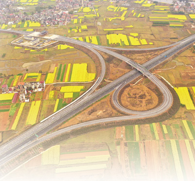 在江西省吉安市泰和县万合镇,广吉高速公路与开满田园的油菜花相映成趣。