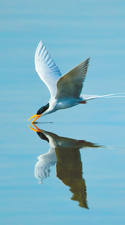 河燕鸥在大盈江捕食。