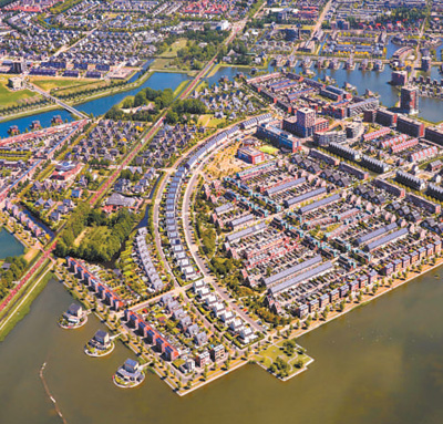 在荷兰海尔许霍瓦德市南部,坐落着一个远近闻名的“太阳城”社区。从空中看,社区整体规划严整,以一个边长700多米的正方形岛屿为中心,周边是大片水域和绿地,宛如一座大公园。引人注意的是,在鳞次栉比的建筑屋顶上,布满了蓝色的太阳能光伏板。依靠清洁能源,“太阳城”已经成为一个实现碳中和的社区。