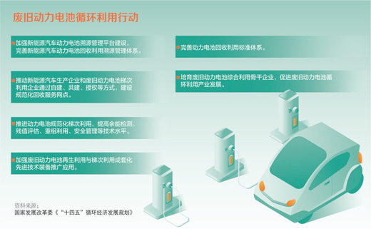 近年来,有关部门陆续出台了新能源汽车动力电池回收服务网点建设和运营指南、梯次利用管理办法、综合利用行业规范条件等一系列政策措施。近日,国家发改委等多部门印发的《“十四五”循环经济发展规划》再次提出,加强新能源汽车动力电池溯源管理平台建设,完善新能源汽车动力电池回收利用溯源管理体系。