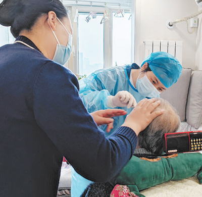 “叔叔的理疗坚持做了吗?”“阿姨,快让我瞧瞧您新画的国画!”换鞋套、放包,谈笑间,老人最近的身心状态基本摸清了。