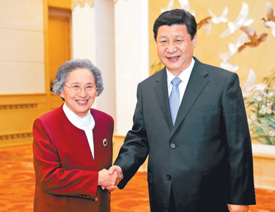 2014年1月22日,中共中央举行党外人士迎春座谈会。这是习近平同志与何鲁丽同志在一起。
