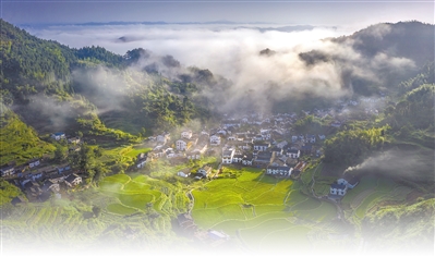 安徽省休宁县祖源村,始建于宋代,村内保留众多古桥、古民居、古树。近年来,“梦乡村”民宿群建设促进当地乡村旅游的发展,许多外出务工人员纷纷返乡创办农家乐。图为祖源村的清晨。