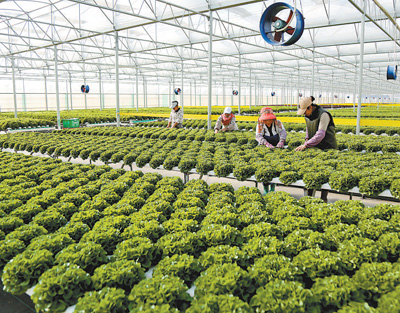 云南会泽县宝云街道华泥社区产业基地内,易地扶贫搬迁群众在种蔬菜。