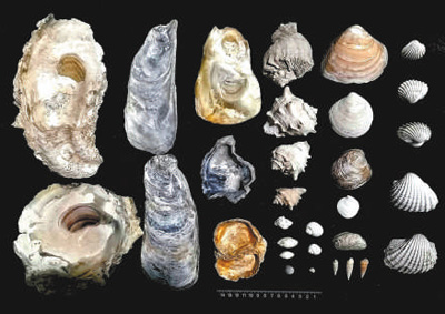 考古发掘中,在清理挖掉厚达六七米的黏软淤泥之后,最先暴露出来的很像是铺满各种贝壳的海边沙滩。细看海贝的种类有大小牡蛎、粗壮的蚶子、海螺和蛤蜊,还有几乎全部已成为贝壳碎屑的蛏子。其实,从分散、混杂的出土情形就不难辨认,它们都是被人吃过后丢弃的。动物的碎骨头,陶器碎片、石器、骨器等人工器物的陆续出土,更能证明它们是古人废弃的生活垃圾。