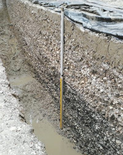 井头山遗址高达两米厚的贝壳堆积文化层。
