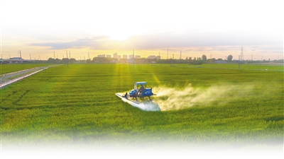 昆山市农户利用高地隙植保机开展水稻绿色防控。