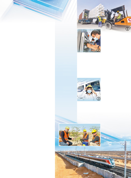 图⑤:中企制造的电动车组运行在埃及斋月十日城铁路上。