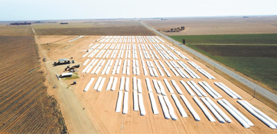南非西开普省,中粮国际在合作农场上安装的筒仓袋中装满玉米。