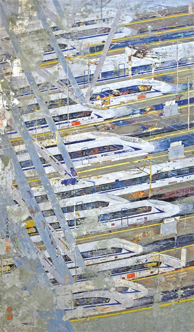 拥有真实的情感体验,只是创作优秀作品的第一步。在此基础上,围绕表现对象深挖主题,感受蕴藏其中的精神力量,从思想高度、文化内涵与审美品位等诸方面展开思考,才能深化作品立意。比如,张静中国画《中国速度》表现的是人们熟悉的高铁。创作者以“速度”为立意,恰当而妥帖,既象征中国高铁不断提升的时速,也代表我国制造业进步的飞速,见证中国发展的快速。作品以富有设计感、简洁而概括的语言,突出科技感与场景营造,时代气息浓郁,很好地表现出中国高铁的发展速度、创新力度。马佳伟油画《高度:5G雄安》则立意在“高度”。作品不仅表现出5G基站的物理高度,更展现出我国信息技术创新能力的显著提高。此外,沙永汇描绘北京大兴国际机场的版画《凤凰展翅》、孙娟娟表现航天事业发展的中国画《飞天梦》等优秀作品的立意,也都各具特色、恰如其分,其构思之巧、视觉效果之美,令人印象颇深。