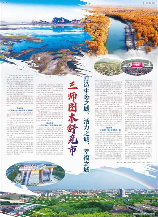 “十三五”以来,三师图木舒克市坚持以人民为中心的发展思想,把绿色生态宜居宜业宜游的理念贯穿于打造生态之城、活力之城、幸福之城的建设中,统筹推进山水林田湖草沙综合治理、系统治理、源头治理,不断完善城市绿色轮廓,通过河流治理、山体景观、“三网合一”构建城市生态环境。截至2020年底,三师图木舒克市全域森林覆盖率由15.1%提高至17.6%,空气质量优良天数常年保持在160天以上。