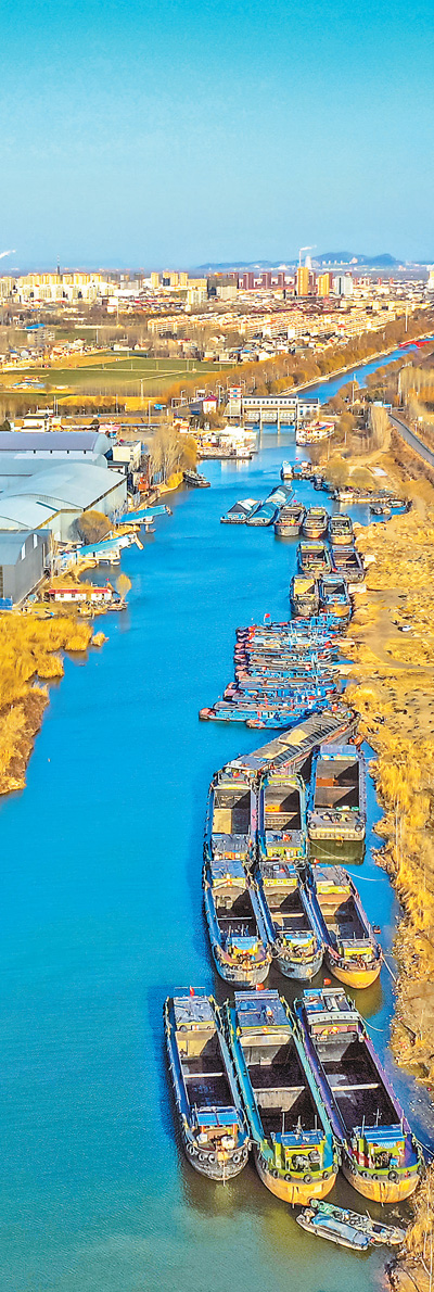 山东省济宁市京杭运河微山段,船只密布,井然有序。