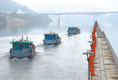 福建省闽江水口段航道上,货船正驶向闽江上游,进行返航归位。