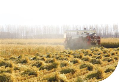 百兴村粮食收割景象。