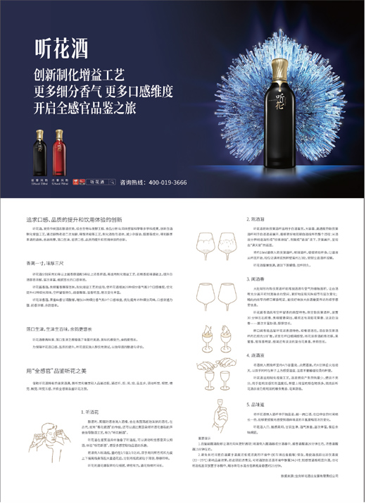 听花浓香酒,果蜜幽香甘润馥郁。增加24种细分香气和3个口感维度,优化提升35种细分风味,口感穿透力强、前香浓郁,余韵悠长。