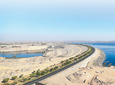 埃及阿斯旺水坝远景。