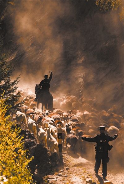 新疆阿勒泰地区福海县边境管理大队抽调民警成立护牧分队,助力当地牧民转场。