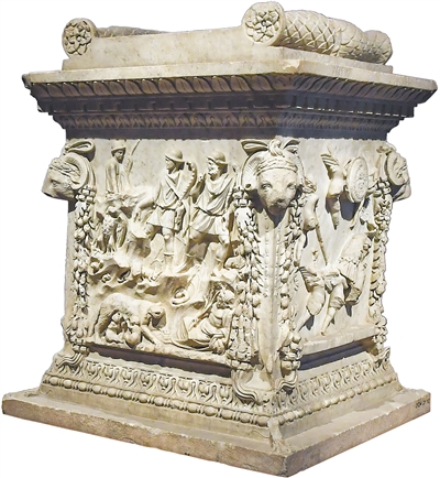 展览分为“族群的记忆”“语言的流变”“诸神的崇拜”,以及“罗马的扩张”“城市的规划”“信仰的演变”“凯撒的后裔”等11个主题单元。前4个单元从社会、语言和宗教的多元视角展现罗马统一前意大利文化的“马赛克现象”。祭拜玛尔斯、维纳斯和森林之神西尔瓦诺斯的圣坛,刻画了母狼哺育双胞胎的神话故事,再现了古罗马文明的起源。圣坛上繁复的装饰,将罗马民族具有神祇血脉的主题同战神玛尔斯和美神维纳斯的结合联系起来,展现了罗马人神话中的祖先,以及其所象征的忠贞与和谐。
