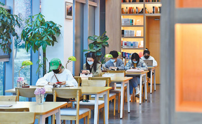 在山东省日照市东港区城市书房樱花馆,市民们在读书、学习。